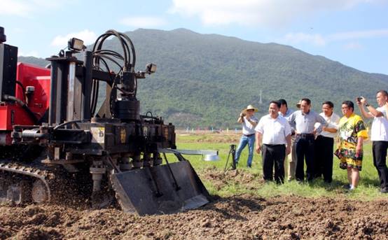 12月19日上午的三亚南繁综合试验基地天蓝风清、温暖宜人,袁隆平院士和海南省农业科学院副院长曹兵、海南省粮食作物研究所所长孟卫东、海南省三亚市南繁科学技术研究院院长柯用春、海南省南繁管理局副局长黄启星、国家杂交水稻工程技术研究中心二级研究员白德朗,以及粉垄技术发明人广西农业科学院二级研究员韦本辉、粉垄机厂商广西五丰机械有限公司董事长李深文等悉数到场,共同见证“超级杂交稻粉垄栽培示范课题”的启动。 据该课题主持人白德朗介绍,该课题是典型的“良种+良法”——