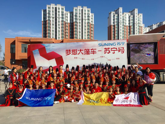 梦想大篷车公益项目是苏宁与上海真爱梦想基金会在2015年联袂打造的教育公益项目。“苏宁号梦想大篷车”是由一辆卡车改造而成,车长17米、高4米,车体完全展开后的内部面积是一间近60平米的“移动梦想课堂”,教室内除了布置书架、课桌、平板电脑、投影仪等教学用具,还兼具多媒体视频教学、小型图书馆、移动阅览室、流动电影院等多样化的功能。