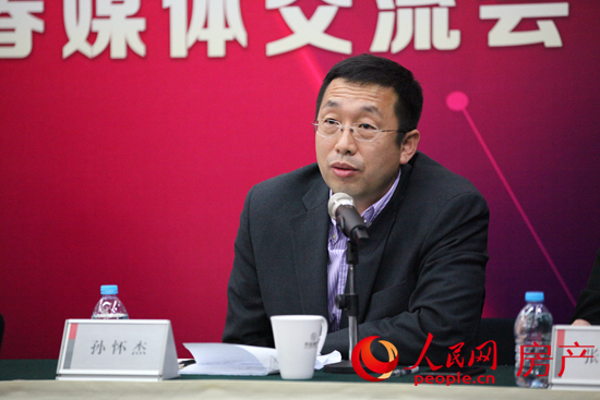 华远地产总经理孙怀杰回答记者问。(人民网 伍振国/摄)