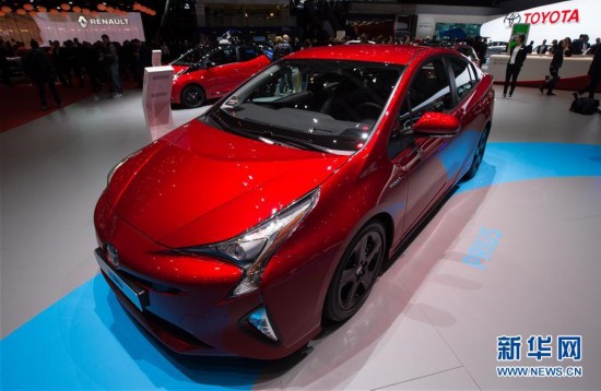 这是3月8日在瑞士日内瓦国际车展上拍摄的丰田混合动力轿车PRIUS。当日,被誉为汽车领域“风向标”的第87届日内瓦国际车展继续对媒体开放,各厂商展示的新能源汽车备受瞩目。 新华社记者徐金泉摄