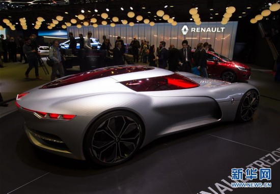 这是3月8日在瑞士日内瓦国际车展上拍摄的雷诺纯电动概念跑车TREZOR。当日,被誉为汽车领域“风向标”的第87届日内瓦国际车展继续对媒体开放,各厂商展示的新能源汽车备受瞩目。 新华社记者徐金泉摄