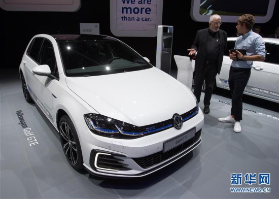 这是3月8日在瑞士日内瓦国际车展上拍摄的大众插电混合动力车高尔夫GTE。当日,被誉为汽车领域“风向标”的第87届日内瓦国际车展继续对媒体开放,各厂商展示的新能源汽车备受瞩目。 新华社记者徐金泉摄