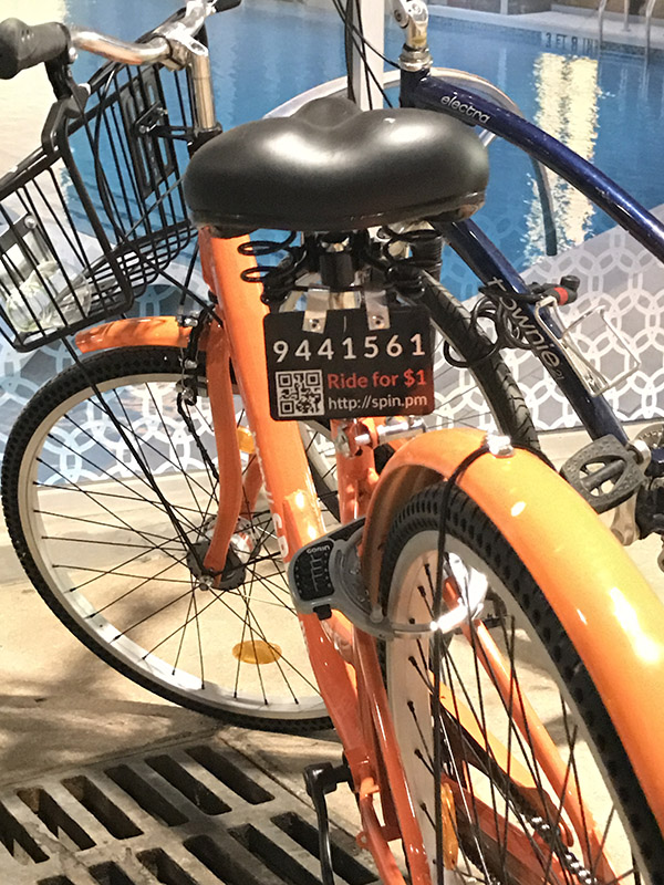 当地一种与ofo极其相似的共享单车,随停随用,一次1美元。澎湃新闻记者 包雨朦 图