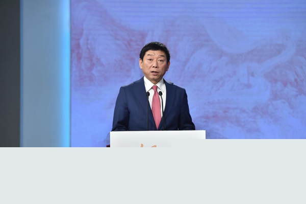 工业和信息化部总经济师王新哲致辞。(人民网记者 翁奇羽摄)