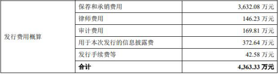 西菱动力的发行费用总计4363.33万元,其中支付给保荐机构——中金公司的保荐和承销费用就达到了3632.08万元。