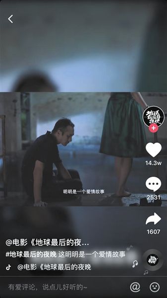 《地球最后的夜晚》在抖音平台上的官方账号运营得也不好,它在抖音上主要是围绕“一吻跨年”的概念做营销,与用户产生互动,在电影上映之前制造这个话题,营造仪式感,引发病毒式营销。结果,在这种话题营销下,毕赣这部文艺片预售票房高达1.59亿,排在内地影史首日预售票房榜第7位。