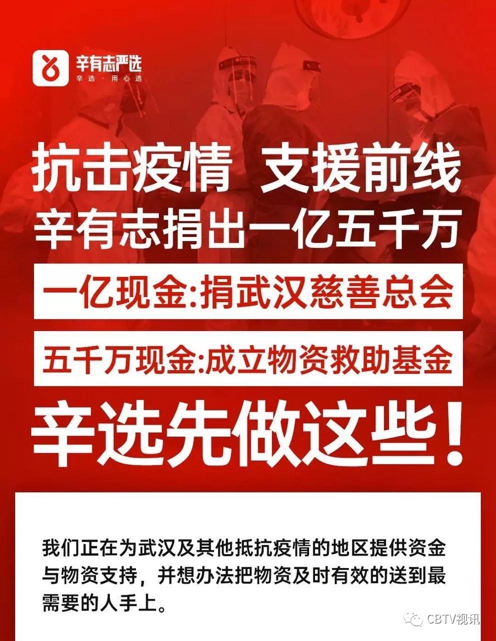 1月30日,一位网名辛巴的9000万元捐款,引起武汉慈善总会注意。辛巴实名辛有志,共捐出1.5亿元,成为全国第一位捐款过亿的个人。