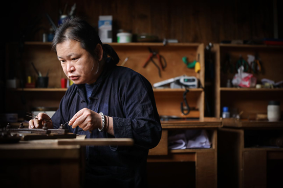 图为潘仕学在做银器 受访者供图