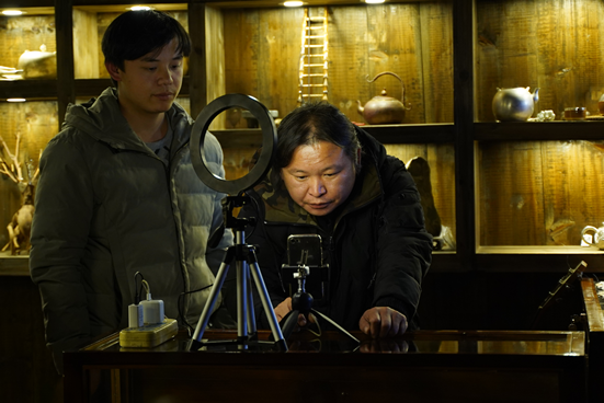 而改变这一切的,是“短视频+直播”这个推手。以潘仕学的工作室为例,通过抖音短视频,先后有近百位粉丝来到麻料村体验银饰制作,这其中包括外国抖音用户。粉丝们在体验完学习制作银饰后,还会购买其他的银饰送给自己,送给亲朋好友。这极大带动了银饰的销量,从2019年6月份到8月份,潘仕学总共带动销量6万余元。