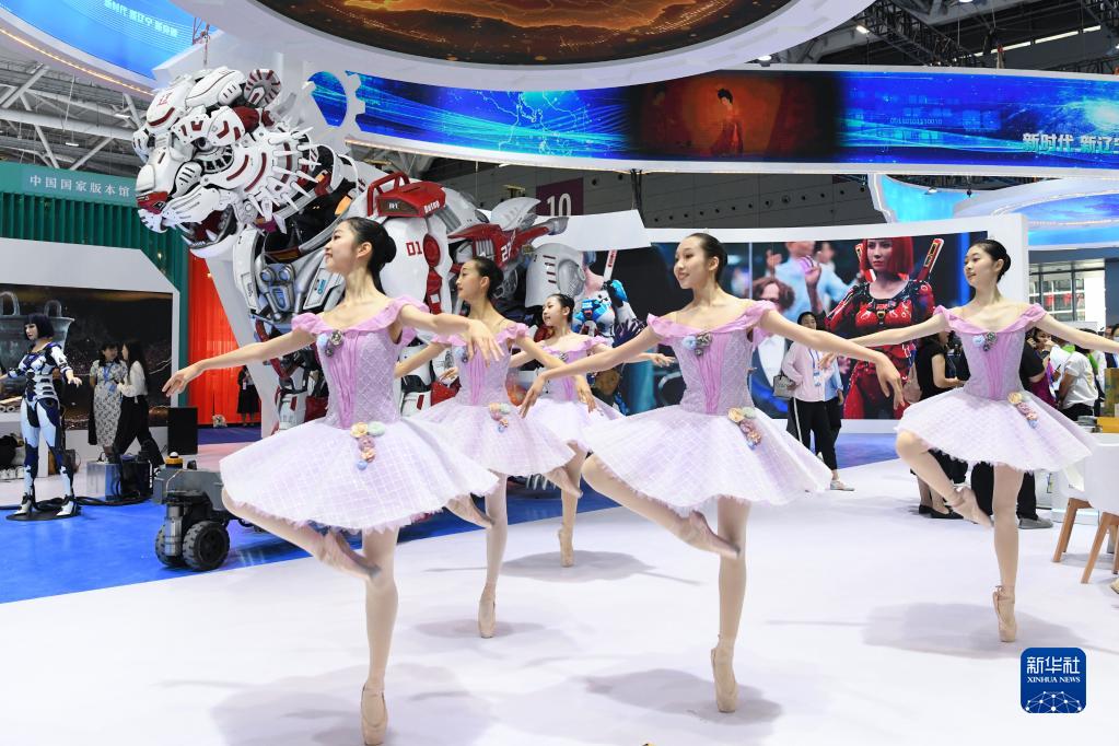 6月7日,舞蹈演员在文博会辽宁展台为观众带来芭蕾舞表演。