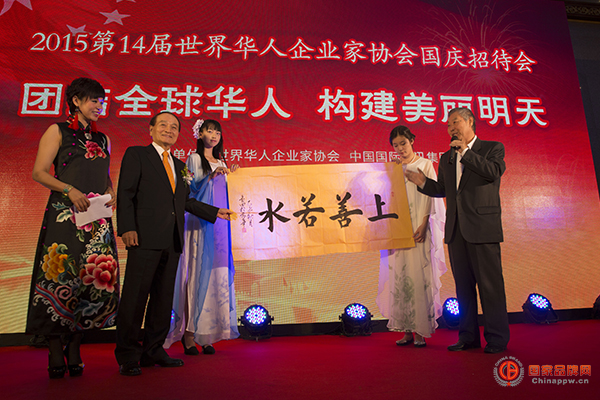 本网讯:2015年9月29日,第14届世界华人企业家国庆招待会在北京钓鱼台国宾馆隆重举行。在中华人民共和国成立66周年之际,来自海外10个国家的华商代表、10余个国家驻华使节代表、10余位中国前驻外大使、10余位共和国将军代表,以及华商在京机构代表、中外艺术家代表受邀出席了国庆招待会。