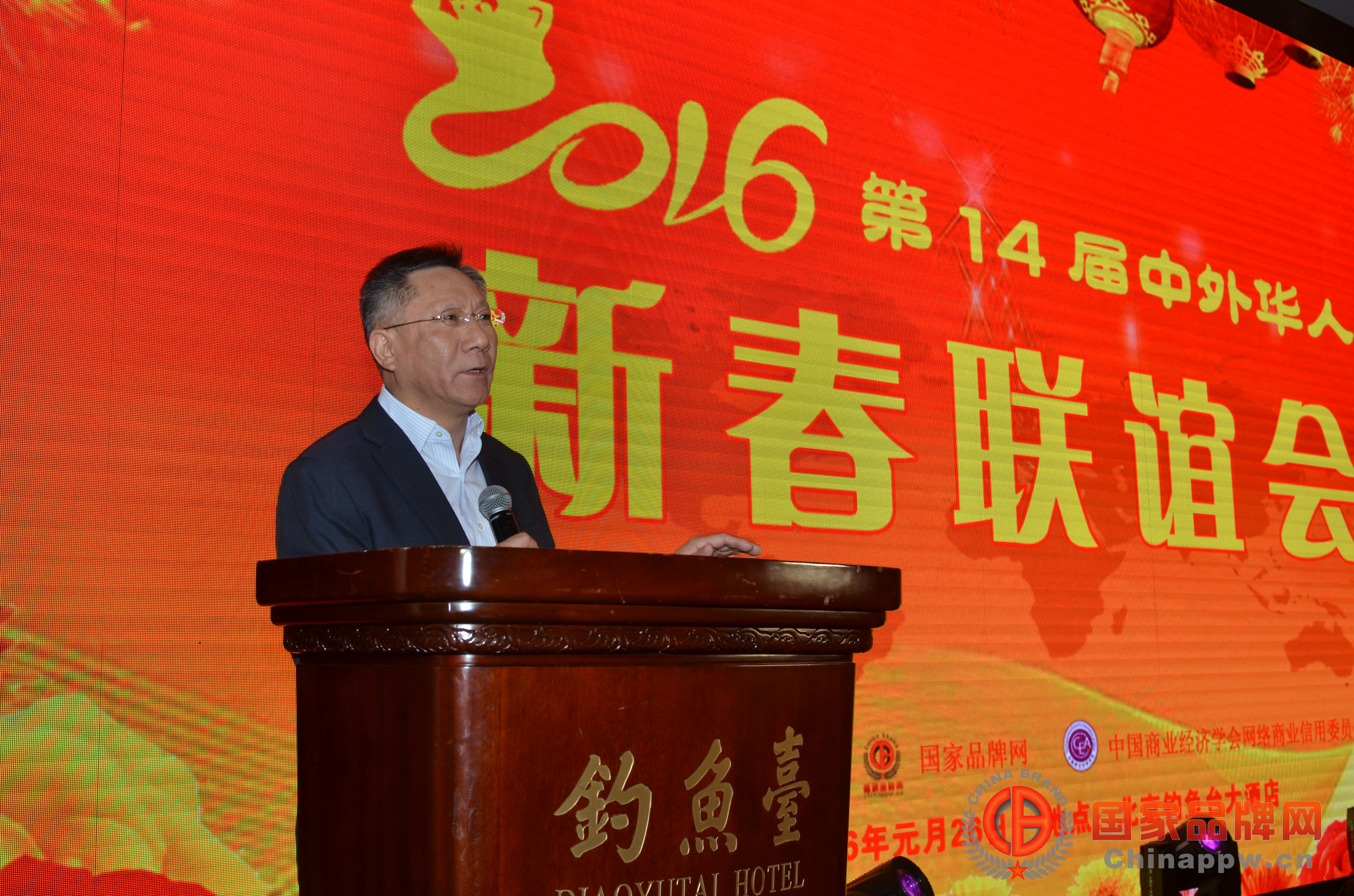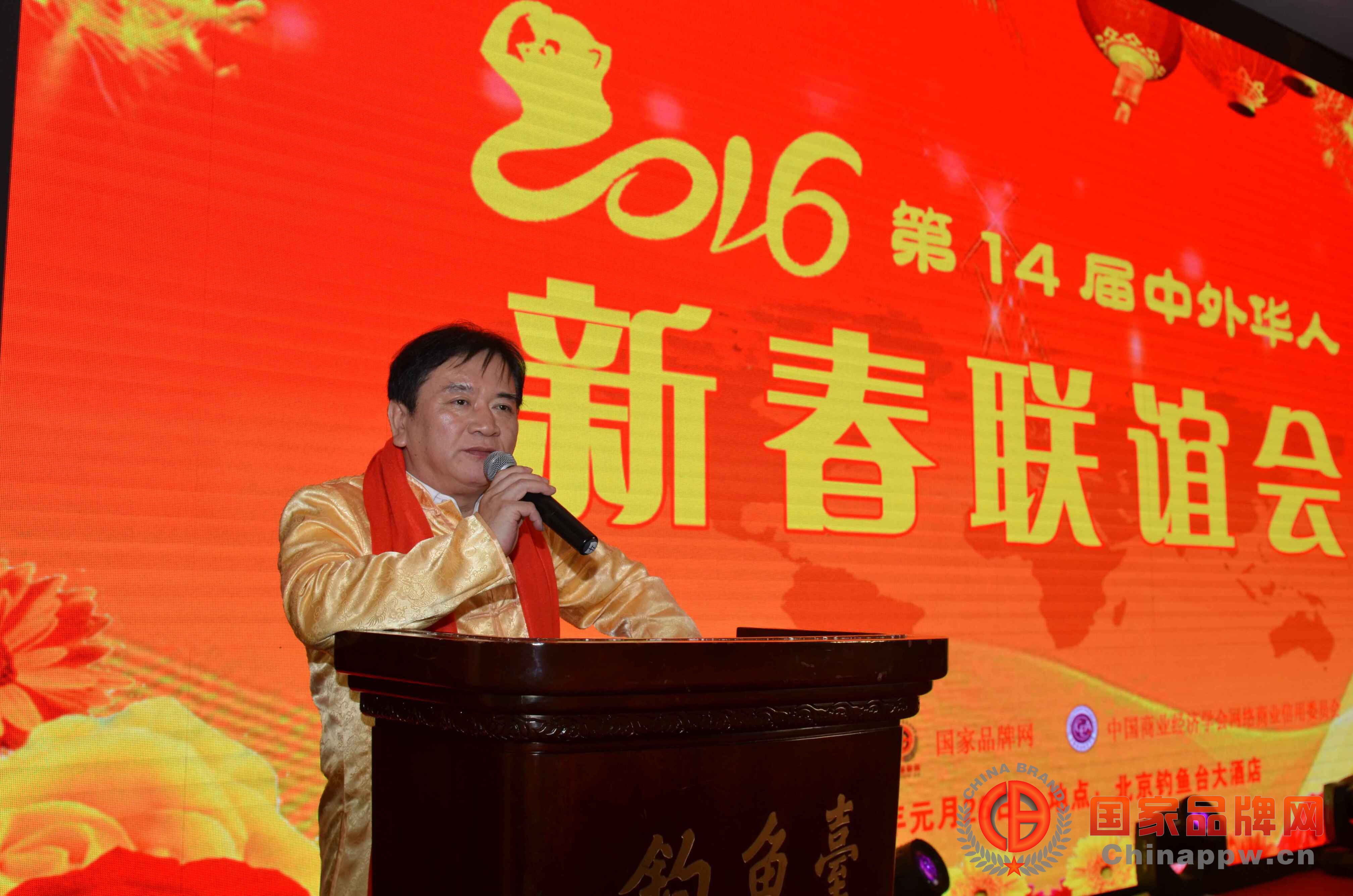 本网讯:由世界华人企业家协会、国家品牌网、中国商业学会网络商业信用委员会联合举办的2016第14届中外华人新春联谊会2016年元月26日下午在钓鱼台大酒店隆重举行。来自美国、德国、俄罗斯、加拿大、泰国、澳大利亚、英国、香港、台湾等十几个国家和地区的华人华商华侨代表,全国十几个省市企业家代表160多人参加了会议。