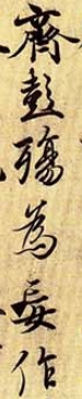 再说书法,兰亭序用笔细腻,结构俊美,笔势流畅自然。采取了行笔连绵的办法,据有舞姿跳动的感觉,技法中常用翻笔。所谓翻笔,简单地说,就是在写完一划的同时,稍作停顿,由左往右或是由上往下翻笔,顺势行笔,比较自由的连接方法,这样就增加了字体的动态感。如:至、毕、清、流、殇、情、咸等字,都呈现出俯仰呼应的气势。