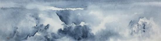 不拘一格的尝试带来了不拘一格的画法,不拘一格的画法形成了不拘一格的风貌,水韵青花山水作品既做到了区别于传统,又与传统有着内在的脉络联系;既做到了师法自然,又与自然保持着若即若离的距离。而这种距离,恰恰是其艺术之山水源于自然又高于自然的距离,也正是其做为一位画家颂赞生命、敬畏自然所时刻保持并仰望的距离。(注:本文作者张雷,文化学者、评论家)