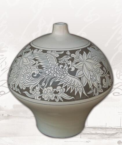 白釉刻划花 丹凤朝阳瓶