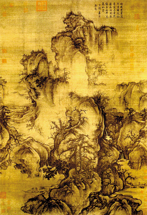 《游春图》的出现,标志着中国山水画的逐渐成熟,同时开创了青绿重彩、 工细巧整的山水画新格式。