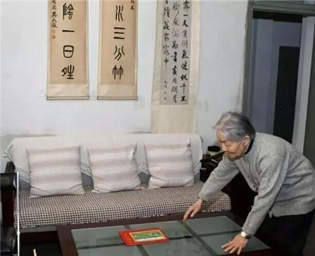 一间斗室,一位百岁老人,与两幅清人书作。