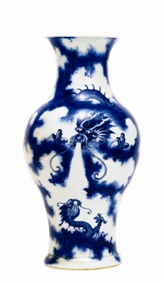 唐英制青花苍龙教子诗文观音瓶
