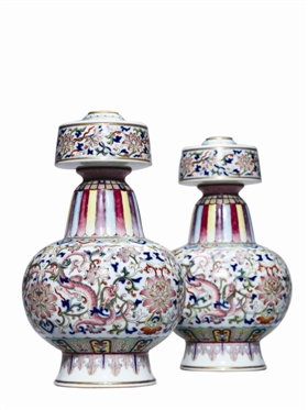 北京保利除了常设的“大明·格古”专场外,此次推出清代宫廷御瓷法器。清代皇家信仰佛教,景德镇的御窑厂大量生产了各种瓷质的佛教用具,例如七 珍、八宝、贲巴瓶、瓷炉、花觚等,除了作为宫中佛堂的法器外,也用来供朝廷赐给西藏地区的佛教寺院。瓷质法器由康熙时期开始制作,乾隆、嘉庆时期,彩瓷法 器也是皇帝向内地寺庙的进献之物。清政府曾将若干彩瓷贲巴壶、五供等器物赠予曲阜的孔庙,以示尊敬。彩瓷法器的烧造工艺在乾隆时期达到顶峰,嘉庆之后便逐 渐衰落停止。此次拍卖融合了若干宫廷彩瓷法器,这些器物将西藏地区传统造型与宫廷御瓷完美结合的,更是汉藏文化融合的历史见证。(段佳莉)