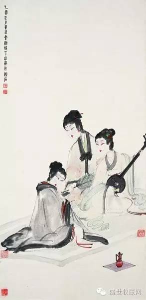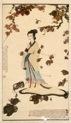 傅抱石擅长画山水和人物而闻名于画坛,他善于用一种细腻的方式表达内心。在人物画中,傅抱石的仕女画最为特色。他除了传统的铁线描、高古游丝等技法,又加入自创的破笔散锋,结合写意和工笔,创造出了独具一格的仕女画。看他笔下的仕女,面颊圆润,身材丰腴,或倚竹而立的佳人,或相思情深的怨女,或者罢曲归来的歌女,如烟如雾,风情万种。傅抱石的仕女画,通过环境的渲染、笔墨的变化与章法的虚实,再加上清新的用色,令仕女画有一种诗的韵味。