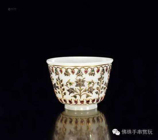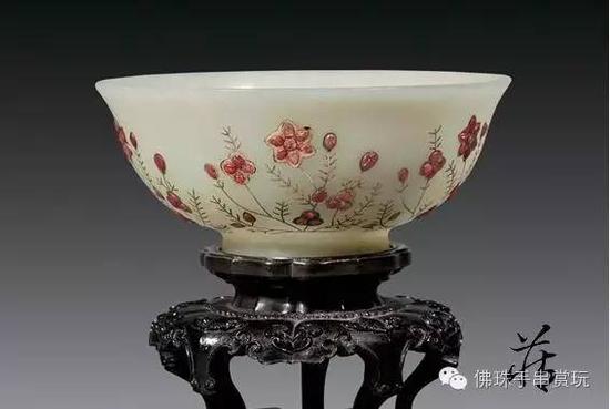 在乾隆一生800多首赏玉诗文中,关于痕都斯坦玉器的多达65首,可见他对痕玉情有独钟,诗中赞道:“西昆率产玉,良将出痕都”,“薄过刻片楮,轻喻举毛鸿”,所谓“玉既莹净,器薄如纸,良材巧琢,非中土玉工所能仿佛也。”