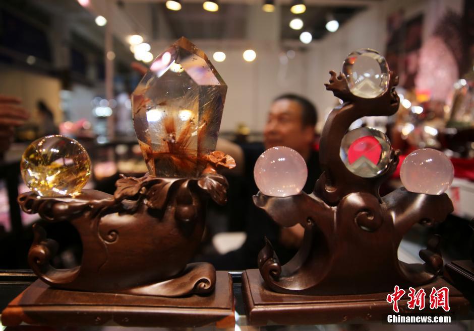 天然水晶展示吸引民众。 中新社记者 赵隽 摄