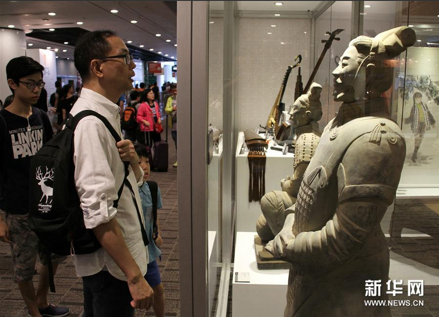正在举行的第27届香港书展特别举办“‘丝绸之路’文化行:陕西与印度”主题展,展出陕西的西周青铜器、秦砖、唐三彩等,向广大香港读者介绍陕西文化。(新华社发 王申摄)