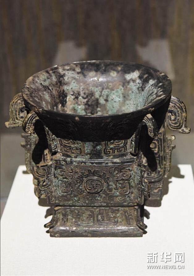 在台北故宫博物院展出的陕西省郿县李村出土的西周中期的盠方尊(8月9日摄)。