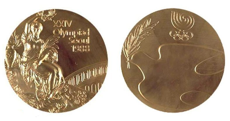 1992年巴塞罗那第25届奥运会奖牌背面,奖牌背面是巴塞罗那奥运会会徽。奖牌的设计者是雕塑家查韦尔-科尔贝