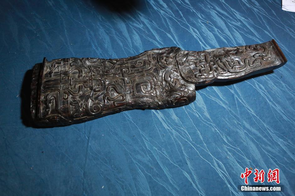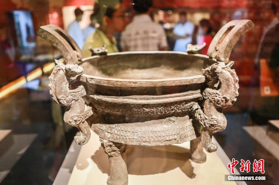 8月16日,湖北九连墩楚墓百余件精品文物在成都金沙遗址进行布展,将于20日正式对公众开放。本次展览精选了142件文物进行展览,包括了青铜编钟、青铜升鼎、龙耳漆方壶、漆木匜形杯与三人踏豕玉坠饰等珍品文物。九连墩1、2号墓是2002年的重要考古发现,其车马坑是中国迄今为止楚墓中发掘规模最大、保存最完好且最壮观的车马坑,两墓共计出土了包括青铜礼器、兵器、漆器与玉器等文物5000余件/套。图为九连墩楚墓出土的兵器。 邱川浩 摄