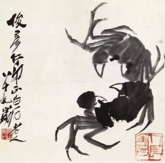 古人画蟹,多重视蟹钳,忽视蟹腿,而我画蟹,则主要是画好蟹的腿爪。——《对娄师白语》