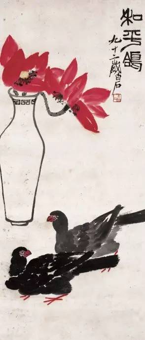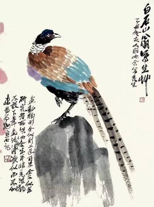 画鸟的神气在于眼睛,是否生动在于咀爪,至于形式、姿态、羽毛颜色比较是次要的。——《与胡佩衡论画》