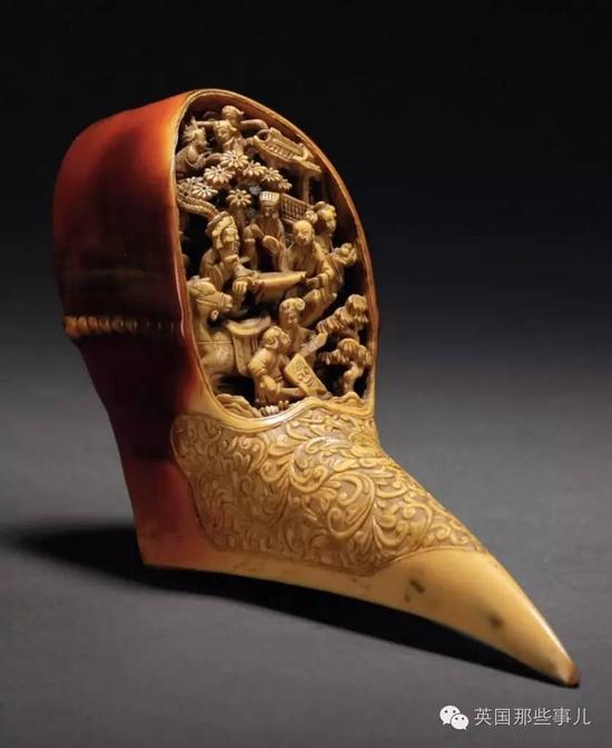 在中国古代,盔犀鸟的头骨是公侯将相彰显身份的饰品,因其外红内黄的色泽被人们称为“鹤顶红”。由于质地光滑细腻,被精心雕刻过后的盔犀鸟的头骨价值甚至要比象牙还高出3倍,日本人曾把它用作和服上的装饰,英国也曾出现用它做出的珠宝盒。