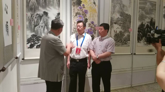 中国书协主席苏士澍、中央国家机关工委统战部副部长,联合会副主席孔冈、中国画院执行院长任琪、中央国家机关美协主席王阔海等三百多人出席开幕式,金陵画派著名画家罗建泉作品《万水千山只等闲》《看万山红遍》入选本次画展获得好评,许多美术专家、画道同行纷份到罗建泉作品前评赏。