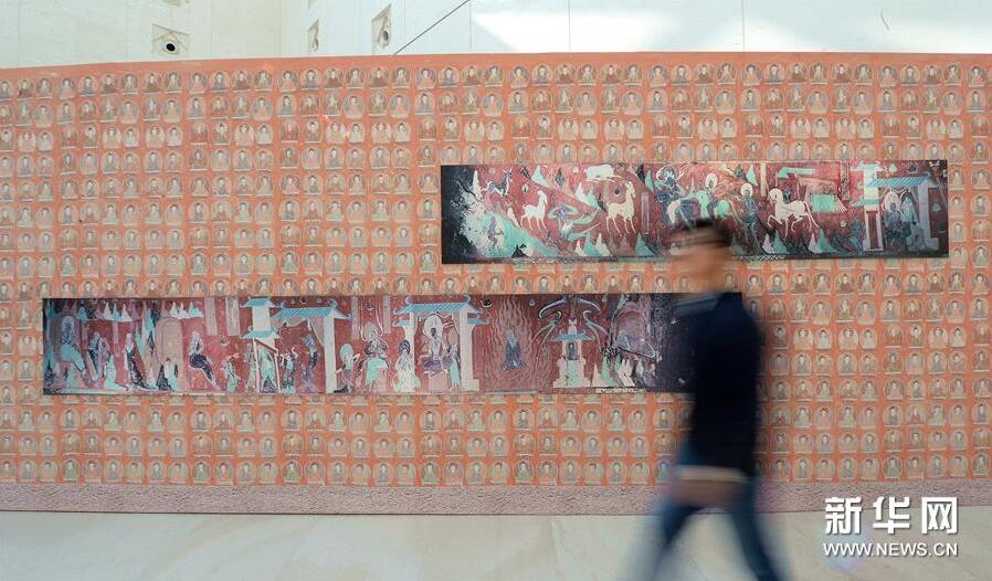 近日,由中国少数民族文物保护协会、中国国际文化艺术公司联合主办的一带一路文化精品展《流动的敦煌移动的壁画》在河北大厂回族自治县民族宫开展。展览展出了复制的十余幅精美敦煌壁画,生动再现了敦煌壁画的形象、色彩和韵味。新华社记者 王晓 摄
