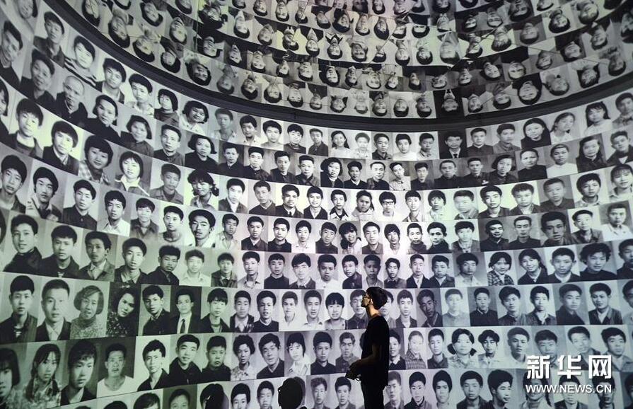 (3)10月18日,参观者在展馆参观瓷厂职工的动态照片。