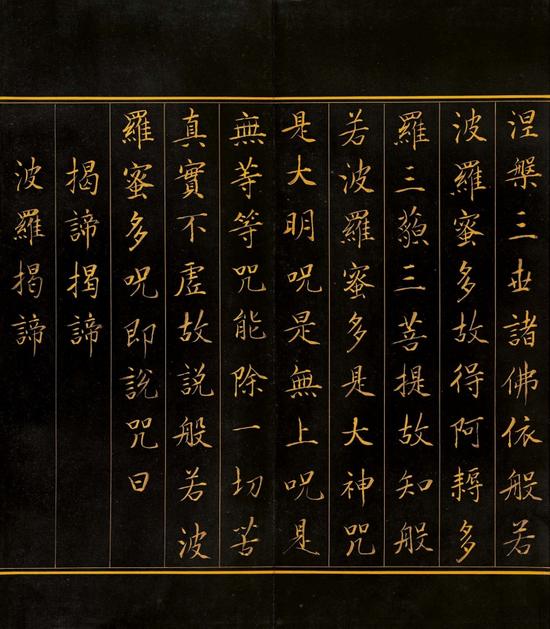 对于清代皇帝而言,书写《般若波罗蜜多心经》(以下简称《心经》)远非是单纯的书法创作,而认为此为君主借以消除灾障,致福吉祥的媒介,似乎也过于狭隘。因为《心经》不仅是博大精深的佛教经典,也被称为代表了高度哲学意义的宇宙观,所以,历代皇帝们的抄经,也蕴含、寄寓了他们通过个人的证心养性,以通达智慧实现救拔群迷、利乐众生的祈愿。