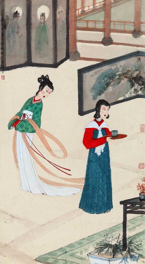 郭彤坦言,这季拍卖没有“天价”拍品,“但整体质量非常整齐”。特别是重中之重的“大观——中国近现代书画珍品之夜”,傅抱石、张大千、齐白石、吴湖帆、吴冠中等二十世纪的重要画家均有巨构呈现。其中,傅抱石《风光好》是其金刚坡时期的精心之作,以五代故实“陶榖赠词”为题,攫取南唐歌伎秦蒻兰当堂歌唱的瞬间,全图描绘工细,色彩妍丽,气氛曼妙,以高古游丝式的线条来表现人物,仕女姿态端庄高雅。