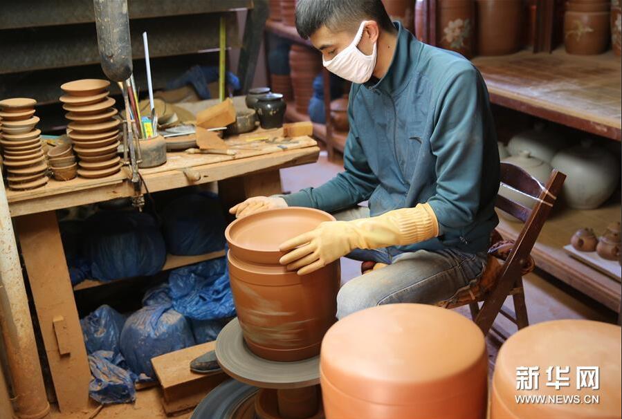 (3)11月17日,云南建水一制陶企业员工在制作陶品。