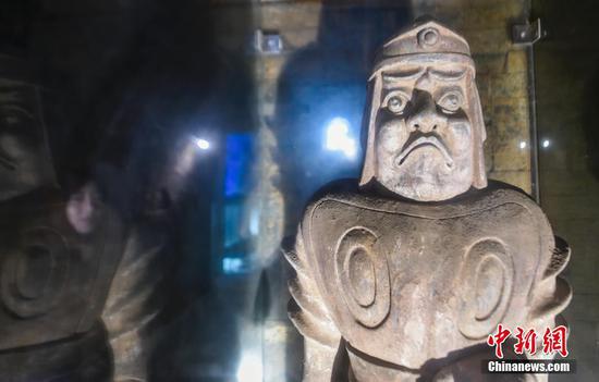 这是我国为数不多主动发掘的帝陵,是中国挖掘开放时代最早的帝王陵,也是极少数对公众开放地宫的帝陵,正因为如此,景陵也成了众多历史爱好者热捧的探秘之地,走进墓道,冷色调的灯光下,孤立的石棺,让游客感到阵阵阴森。图为12月4日,河南洛阳,北魏宣武帝“景陵”墓室地宫,一对具有鲜卑族雕刻风格的石像。 中新社发 黄政伟 摄 图片来源:CNSPHOTO