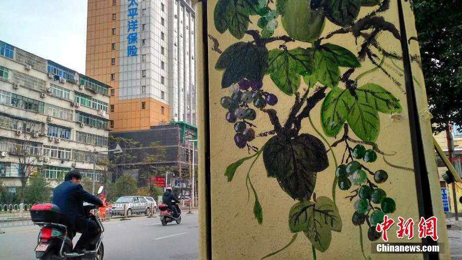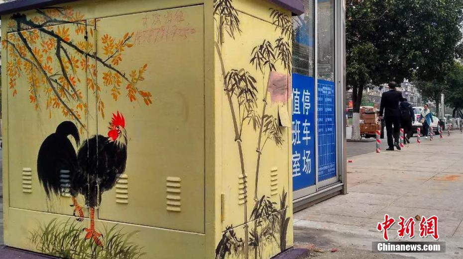 街头配电箱上的油画题材多以动植物山水为主。 王昊阳 摄