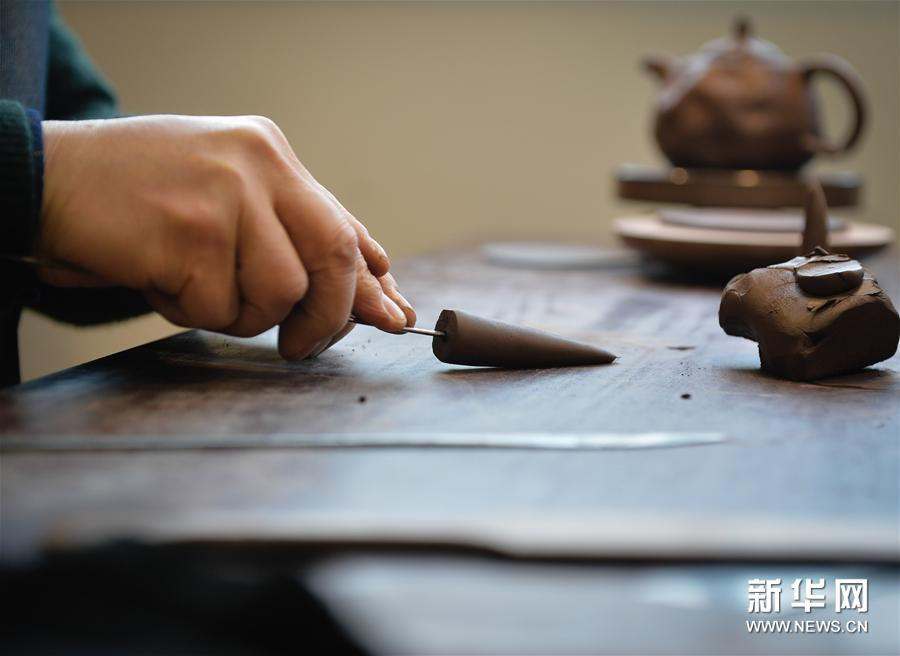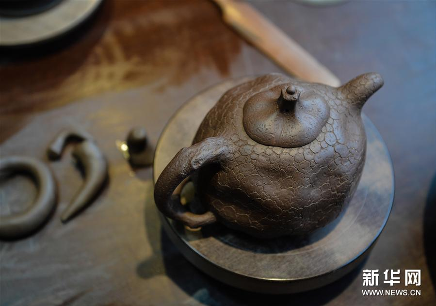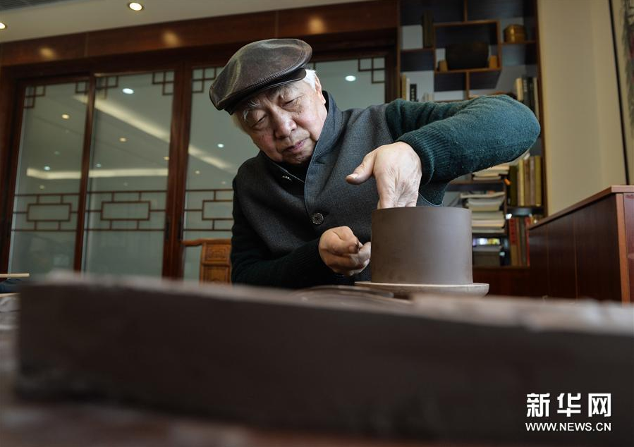 江苏宜兴是我国陶瓷历史文化名城,紫砂、精陶、均陶、青瓷、美彩陶被誉为宜兴陶瓷“五朵金花”。紫砂壶,以其独特的泥质、古朴的美感名扬海内外。这种在民间被称为“富贵土”的泥料,在制壶师灵动的指尖下,变身为一把把雅致的“紫玉金砂”壶。一直以来,宜兴十分重视陶艺的传承。至2015年年底,全市有6587名专业人员从事陶艺工作。江苏省非物质文化遗产传承人顾绍培年已七旬,从业50余年,至今仍在不断耕耘,坚持创新,是宜兴陶艺工作者的优秀典范。(新华社记者 季春鹏 摄)