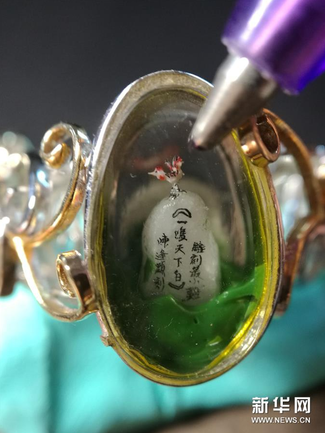 为迎接丁酉鸡年,台湾微雕艺术家陈逢显耗时三个月,在1毫米的树脂材料上雕刻了一只栩栩如生的“袖珍鸡”。“袖珍鸡”镶嵌在一枚戒指内,需通过高倍放大镜才能一探究竟。新华社记者 欧东衢 摄