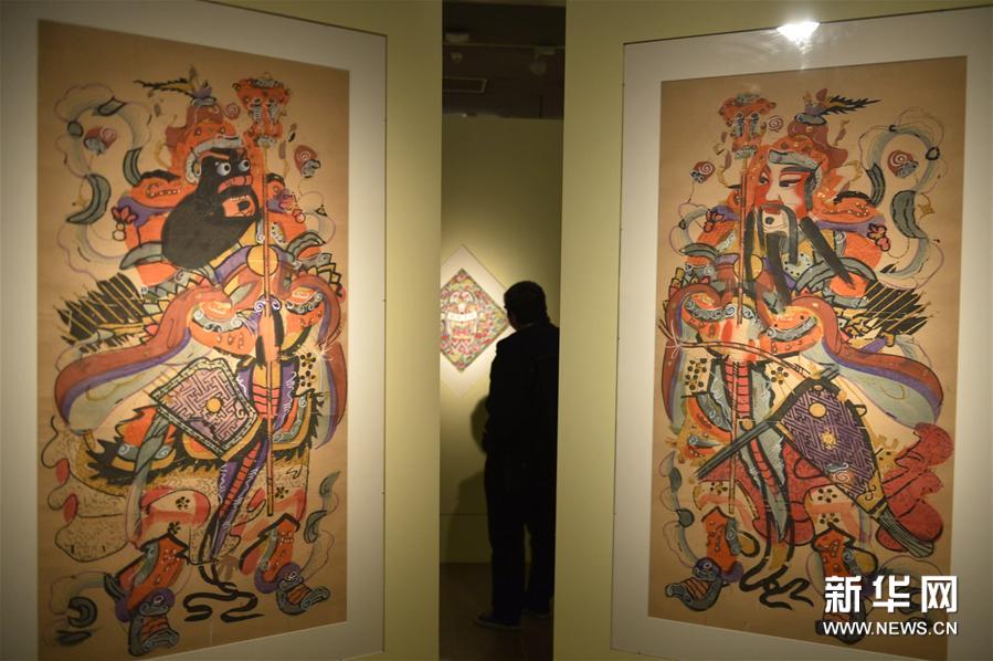 1月23日,媒体记者在北京中国美术馆参观展出的杨柳青年画作品。