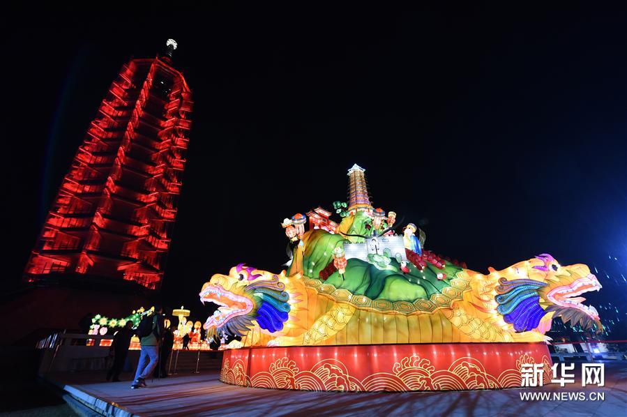1月23日,南京大报恩寺遗址公园内的灯景被点亮。