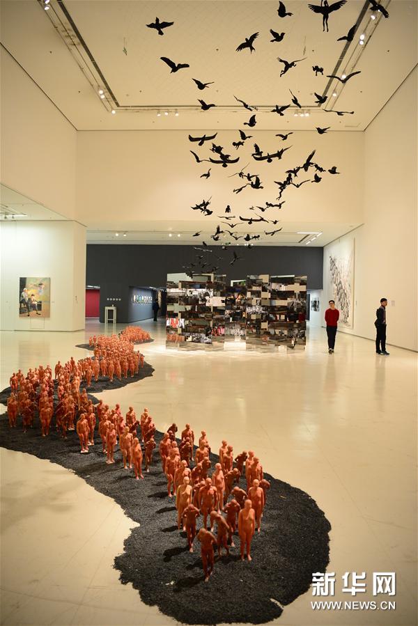 城墙之外——2017西安当代艺术展近日在西安美术馆开展,此次展览展出的225件作品涵盖架上艺术、装置艺术、影像艺术等,展览将持续至4月7日。(新华社记者 邵瑞 摄)