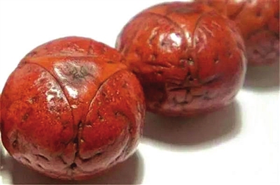 说到菩提根,很容易联想成是菩提的根,其实不然,菩提根是一种叫做贝叶棕植物的种子,属于菩提子的一种。表面看起来是个不起眼且粗糙的种子,剖开后最里面是白色,经过长时期的盘玩会变成黄褐色。(小潘)