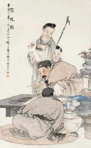 胡术工人物、花鸟、山水,尤擅仕女,他曾师法费丹旭,文献又称他的人物画“学任渭长(即任熊,笔者注)”或“上窥陈洪绶,近接任渭长”,用笔圆劲,设色妍丽,自具风貌,时人有“背面美人,风趣独绝”的称赞。从传世作品上看人物画中也确有任熊痕迹,只是造诣不高,称不上是任熊的佳弟子。他的人物常于面部略加晕染,与汪谦相似,但少恶俗之气。