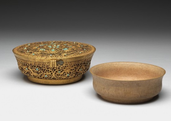 木碗附嵌绿松石铁鋄金盒