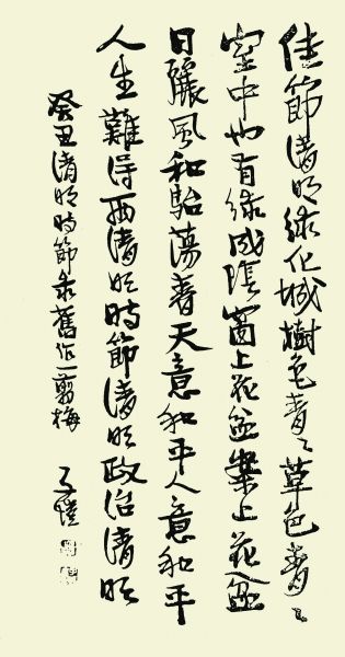 释文:佳节清明绿化城,树色青青,草色青青。